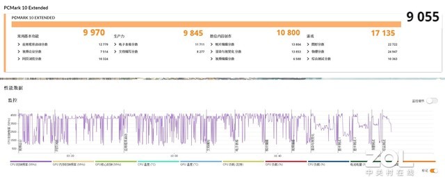 常用基本功能测试方面,包含Web浏览、视频会议、应用程序启动等得分为9970分,说明其完成基础办公应用没有任何问题;生产力项目测试得分为9845分,表明其拥有高效的电子表格、文档工作性能;数位内容创作方面,其评分达到10800分,说明其能够非常高效地完成图片、视频、图形渲染等工作;游戏性能方面的评分为17135分,整体综合得分为9055分。以暗影精灵8 Pro的配置和评分来看,它是一款性能均衡,应对各类应用都没有太大压力的全能产品。