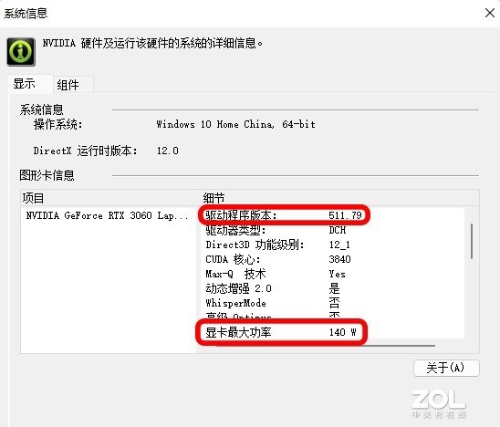 测试显卡性能之前我们将驱动升级到了移动级显卡最新支持的511.79版本(最新的512.59还未推送给移动级显卡),从下图可以看到暗影精灵8 Pro显卡功率为140W。