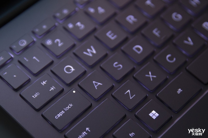 键盘部分则有着18.4mm的大键距,打字时不容易误触,还有着1.3mm键程,回弹非常有力,打字的手感很不错。同时,它的触控板面积非常的大,滑动的手感很棒,反应灵敏,在没鼠标的情况下,也能靠它很好的操控电脑。