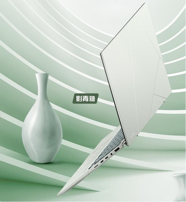 灵耀142022轻薄本设计了一个别致的色彩,而且这个色彩还有个非常好听的名字:影青釉。其外观方面极具特点,A面采用非常有设计感的斜切纹理设计,不规则的亮色线条点缀在A面上,极具艺术感。