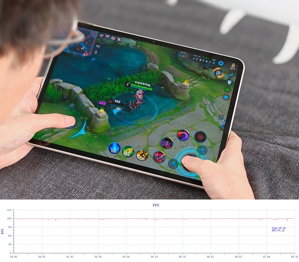 天极网实测,OPPO Pad 2安兔兔跑分99.6万,鲁大师系统体验226.4,旗舰级实力没有被阉割。游戏上手测试跑国民游戏《王者荣耀》:7:5的屏幕比例上下视野更宽,左右视野略有变窄,实测平均帧率为119.3fps,上下波动不超过1.2,波动幅度约为1%,全程游戏下来很稳定。4局游戏打完机身不烫手,仅机身左上角有轻微发热。