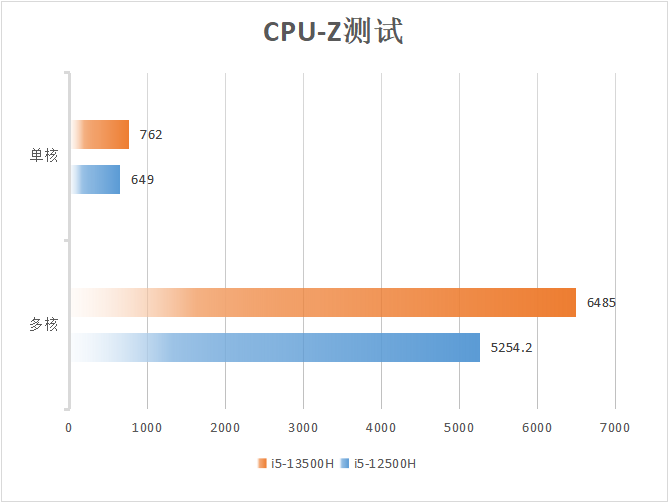 我们首先来看CPU-Z、CineBench R20 & R23、3D Mark以及GeekBench 5等软件的理论性能测试成绩。CPU-Z跑分来说,i5-13500H相较于i5-12500H单核提升4.2%,多核提升6%;