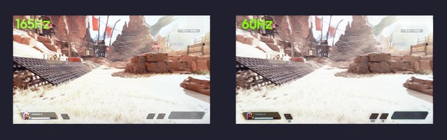从下面两张对比图可以看出,165Hz刷新率屏幕显示效果更加细腻,在转动准星时画面不会出现拖影,而且因为高刷新率对于高帧数的支持更加流畅顺滑,没有画面撕裂等问题,进而可以避免很多干扰因素,辅助玩家实现更快速反应,从而在对战中占得先机。