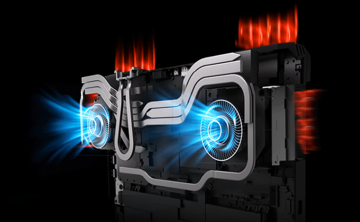 为了保障性能的充分释放,机械师曙光16Pro配备了风刃散热系统,拥有双大排量风扇+7热管+4出风口的强大组合,而且CPU和GPU均选择了导热系数更高的液金,进一步强化散热能力。除了风冷外,它还可以选配水冷箱,通过风+水的散热系统获得更强的性能释放并降低散热噪音。